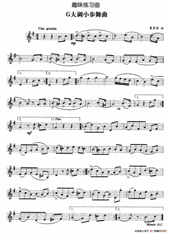 趣味练习曲:G大调小步舞曲铜管谱,趣味练习曲:G大调小步舞曲简谱"