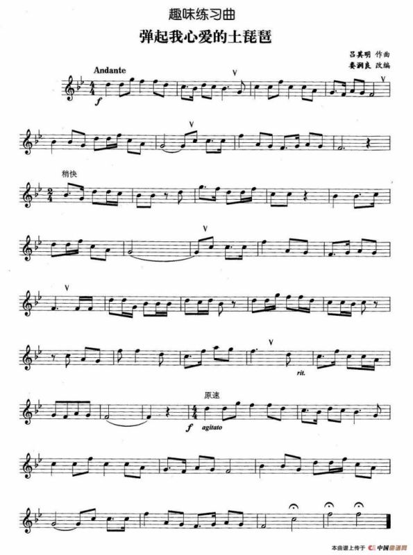 趣味练习曲:弹起我心爱的土琵琶铜管谱,趣味练习曲:弹起我心爱的土琵琶简谱"