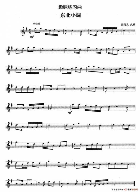 趣味练习曲:东北小调铜管谱,趣味练习曲:东北小调简谱"
