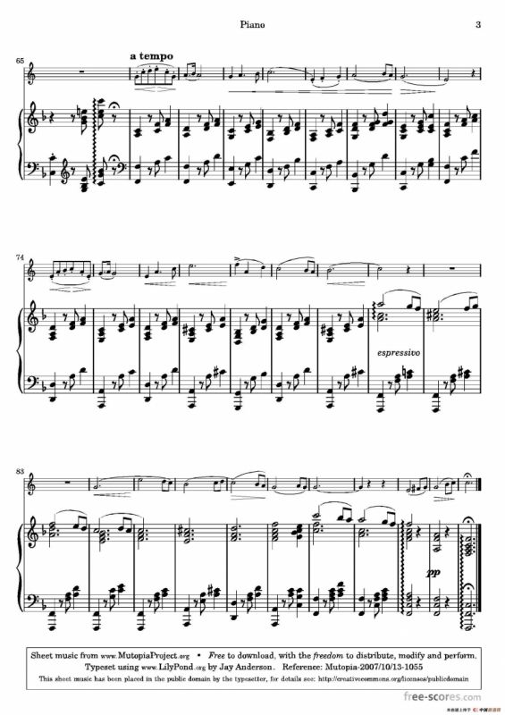 圣桑-浪漫曲铜管谱(圆号+钢琴),圣桑-浪漫曲简谱"