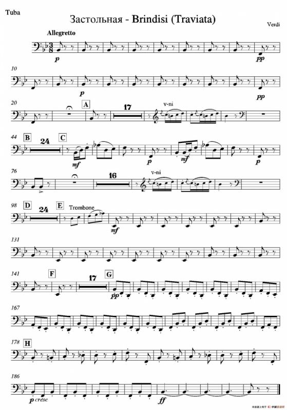 饮酒歌铜管谱(管弦乐队2支倍低音管分谱),饮酒歌简谱"