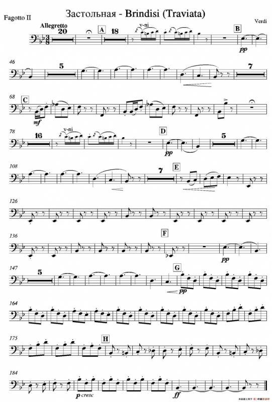 饮酒歌铜管谱(管弦乐队大号分谱),饮酒歌简谱"