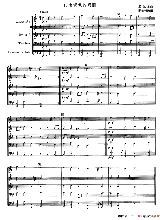 铜管乐重奏曲:金黄色的玛丽铜管谱,铜管乐重奏曲:金黄色的玛丽简谱"