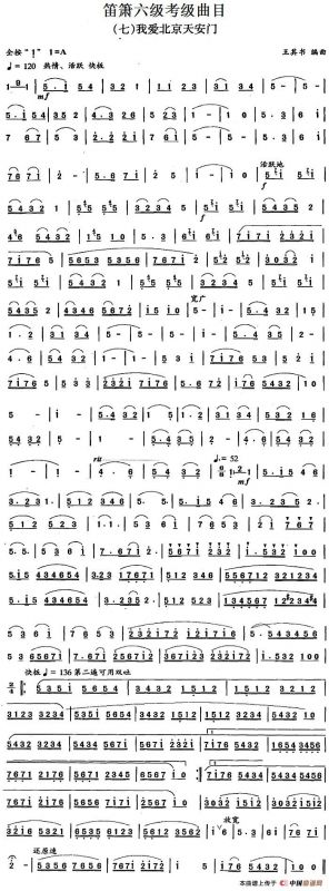 笛箫六级考级曲目:我爱北京天安门笛箫谱,简谱"