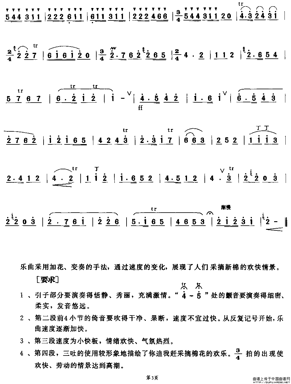 摘棉花笛箫谱(版本二),摘棉花简谱"