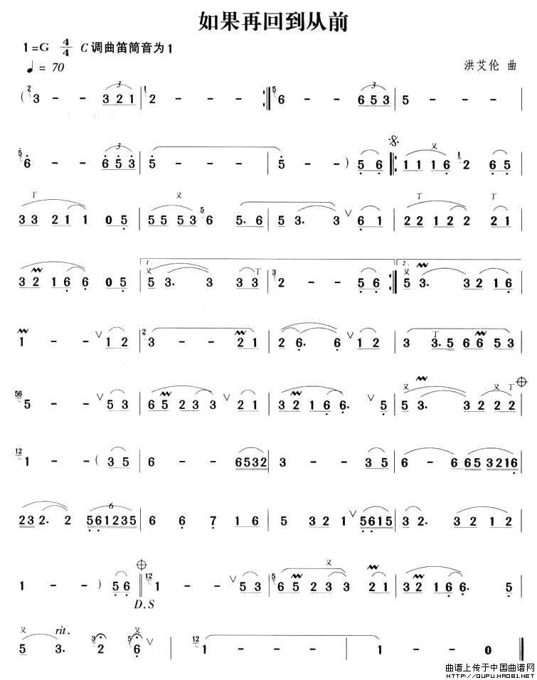 如果再回到从前笛箫谱,如果再回到从前简谱"