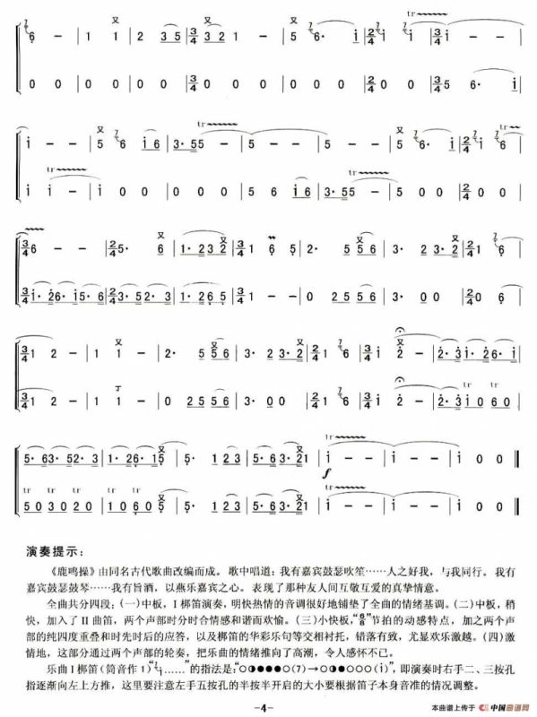 鹿鸣操笛箫谱(二重奏),鹿鸣操简谱"