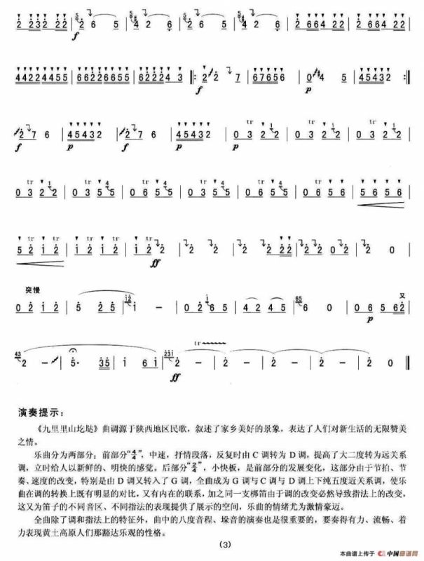 九里里山圪垯笛箫谱,九里里山圪垯简谱"