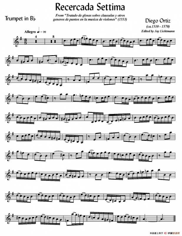 Recercada Ottava (小号谱)铜管谱,简谱"