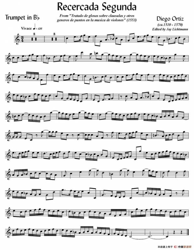 Recercada Segunda (小号谱)铜管谱,简谱"