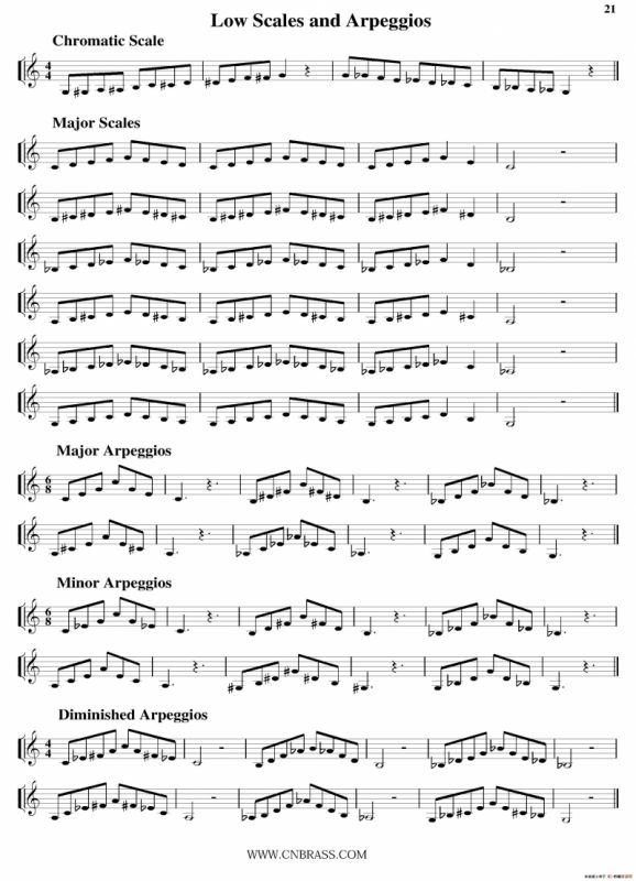 Low Scales and Arpeggios(小号)铜管谱,简谱"