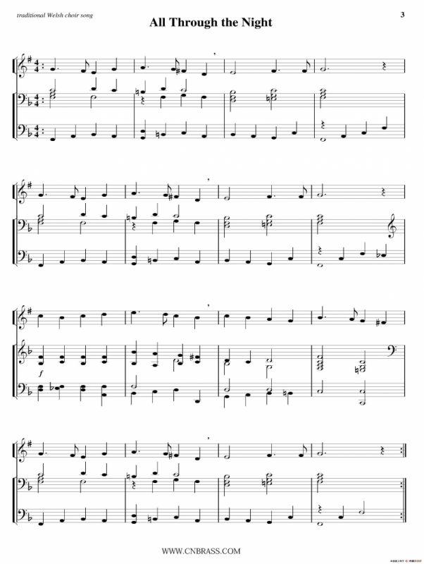 All Through the Night(小号+钢琴伴奏)铜管谱,简谱"