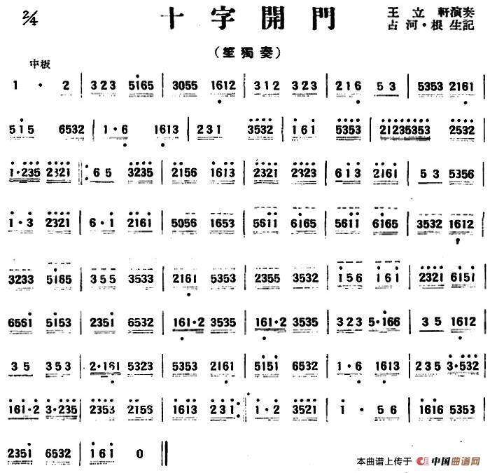 十字开门笛箫谱(山东民乐、笙),十字开门简谱"
