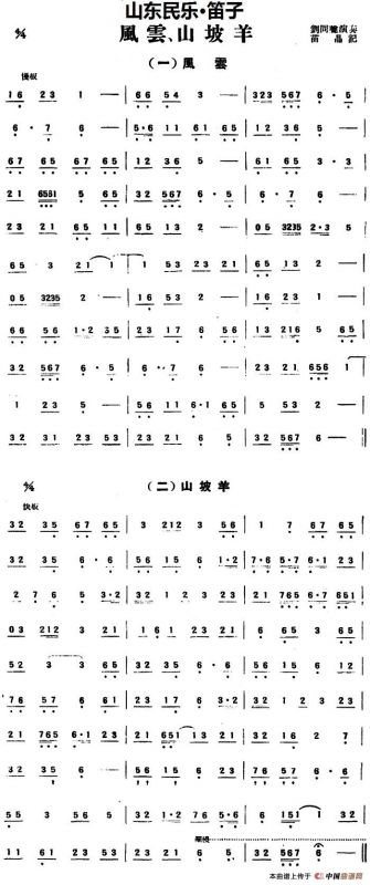 风云、山坡羊笛箫谱(山东民乐、笛子),风云、山坡羊简谱"