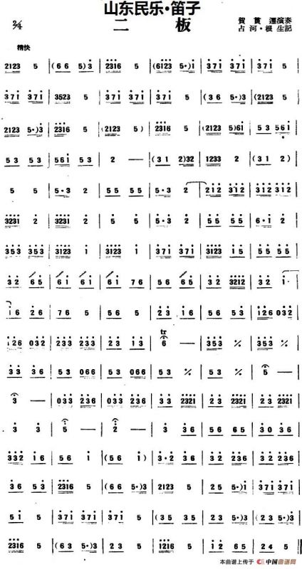 二板笛箫谱(山东民乐、笛子),二板简谱"