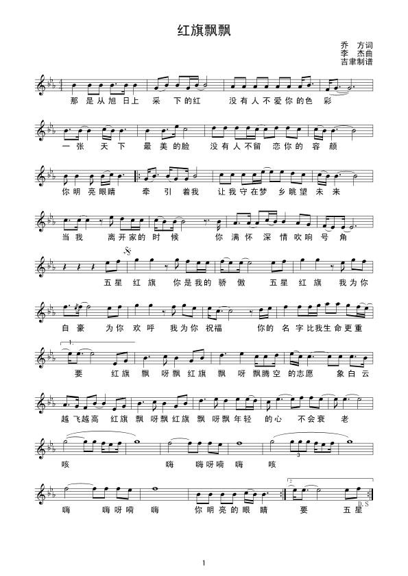 红旗飘飘简谱,红旗飘飘歌曲简介