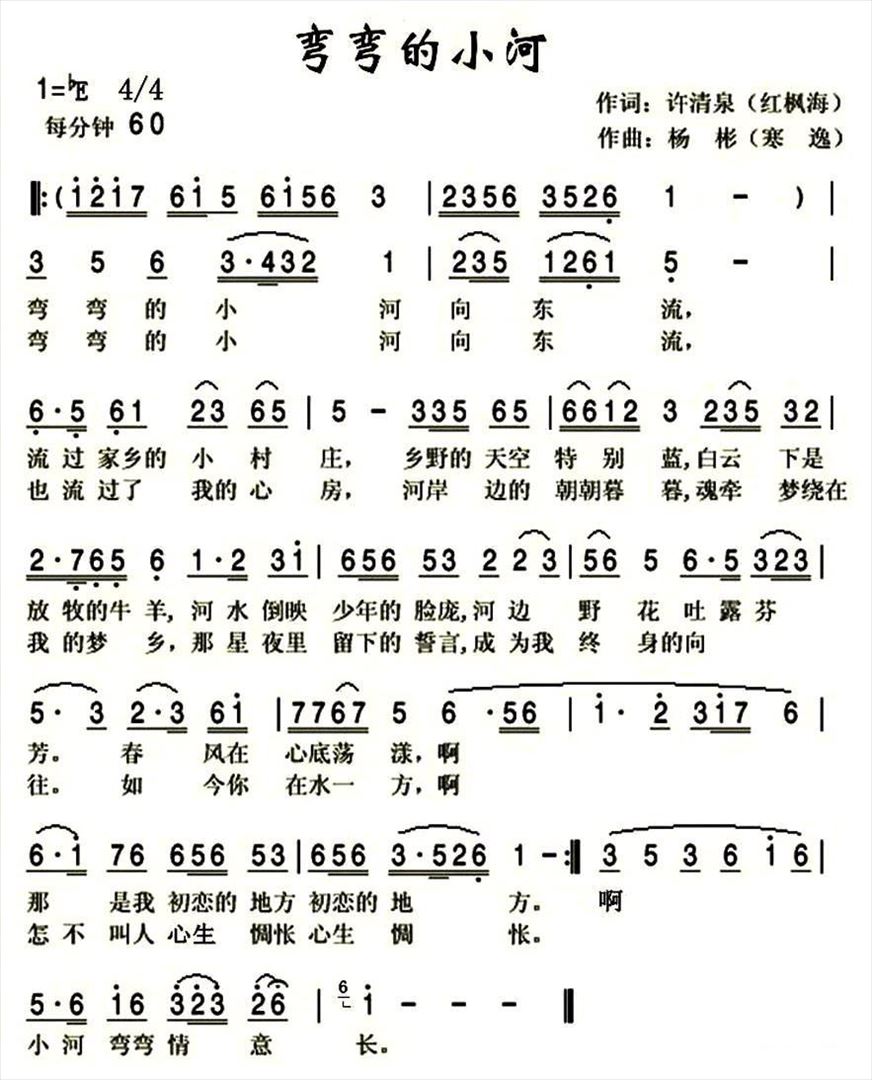弯弯的小河简谱,弯弯的小河歌曲简介