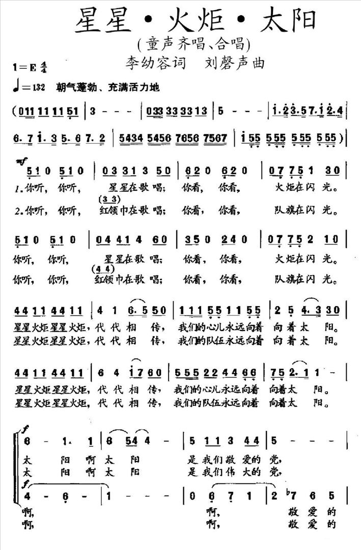 星星火炬太阳简谱,星星火炬太阳歌曲简介