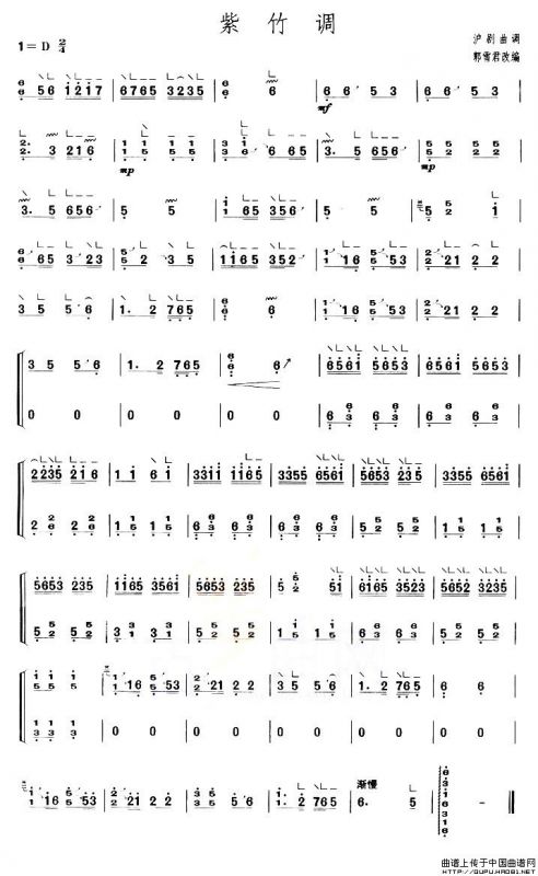 紫竹调古筝谱/古琴谱(【上海筝会】考级二级曲目),紫竹调简谱"