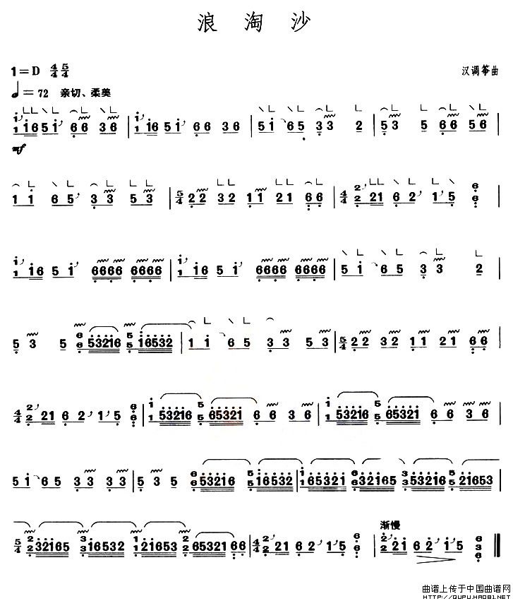 浪淘沙古筝谱/古琴谱(【上海筝会】考级一级曲目),浪淘沙简谱"
