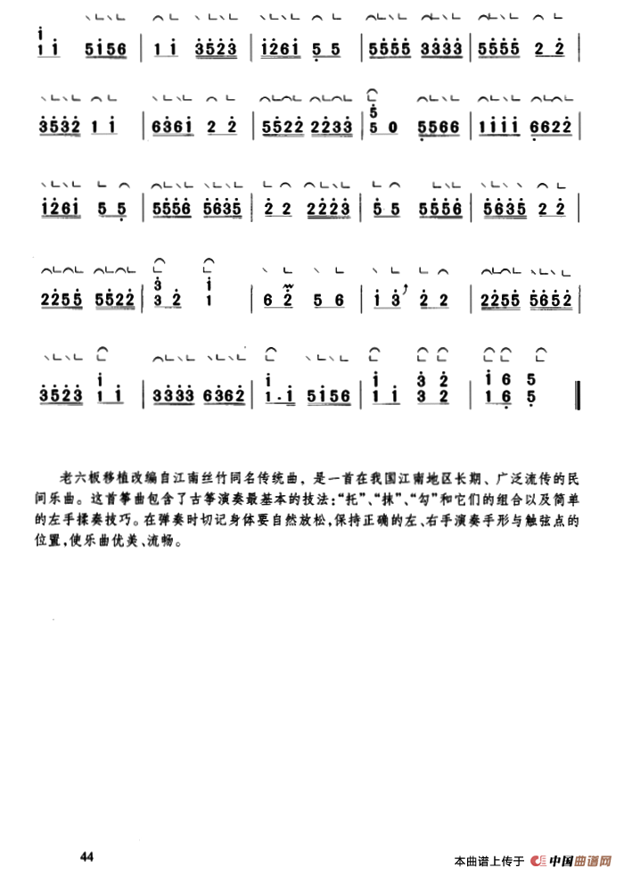 老六板古筝谱/古琴谱(【上海筝会】考级一级曲目),老六板简谱"