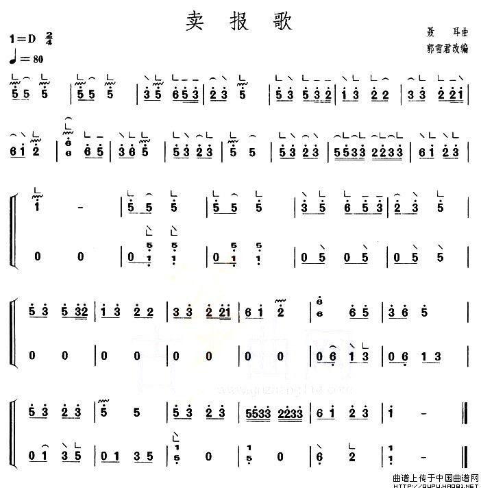 卖报歌古筝谱/古琴谱(【上海筝会】考级一级曲目),卖报歌简谱"