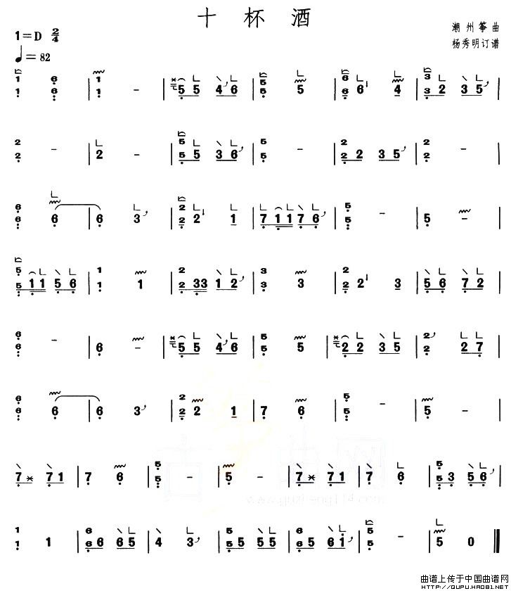 十杯酒古筝谱/古琴谱(【上海筝会】考级一级曲目),十杯酒简谱"