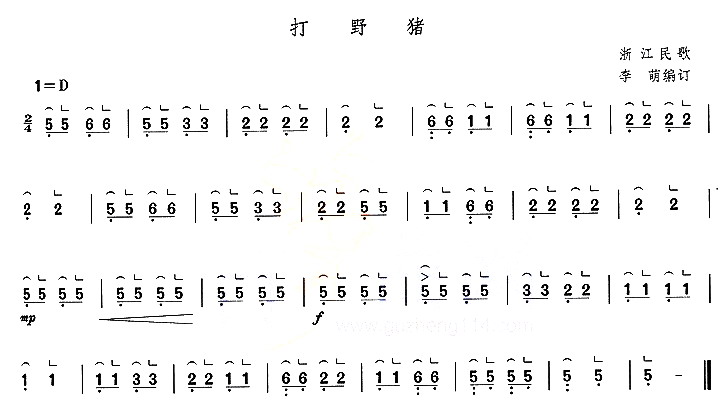 打野猪古筝谱/古琴谱,打野猪简谱"