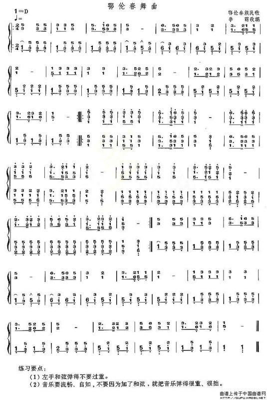 鄂伦春舞曲古筝谱/古琴谱,鄂伦春舞曲简谱"