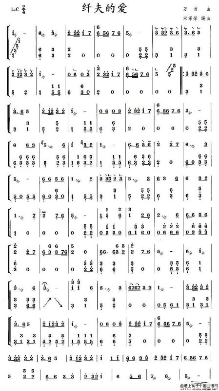 纤夫的爱古筝谱/古琴谱,纤夫的爱简谱"