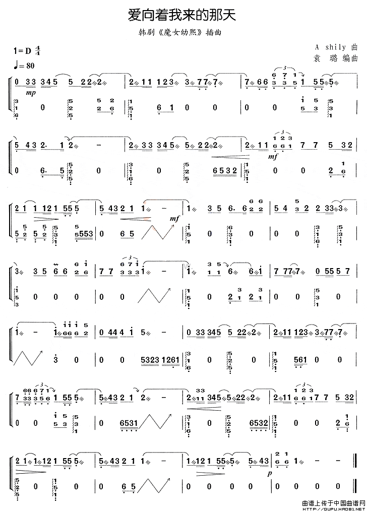 爱向着我来的那天古筝谱/古琴谱,爱向着我来的那天简谱"