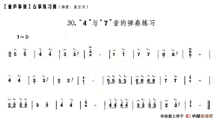 童庐筝谱:30.“4”与“7”音的弹奏练习古筝谱/古琴谱,简谱"