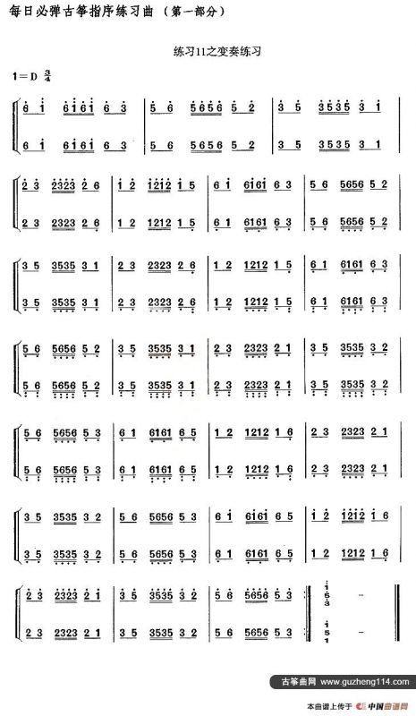 每日必弹古筝指序练习曲(第一部分·11·变奏练习)古筝谱/古琴谱,简谱"