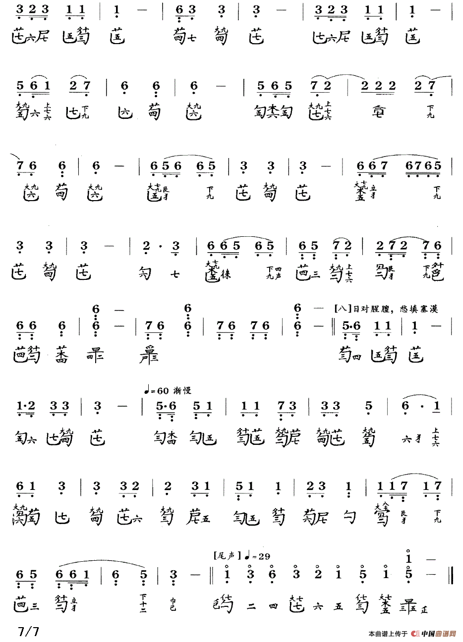 阳光三叠古筝谱/古琴谱(古琴 简谱版),阳光三叠简谱"