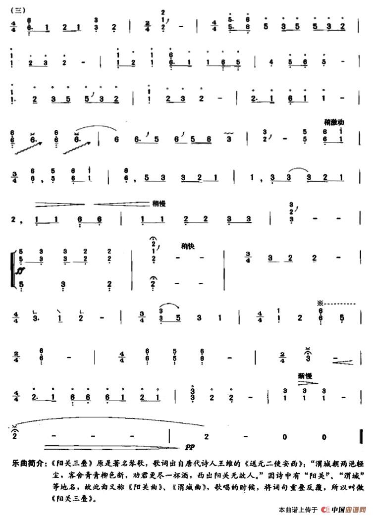 阳关三叠古筝谱/古琴谱(吴青整理版),阳关三叠简谱"