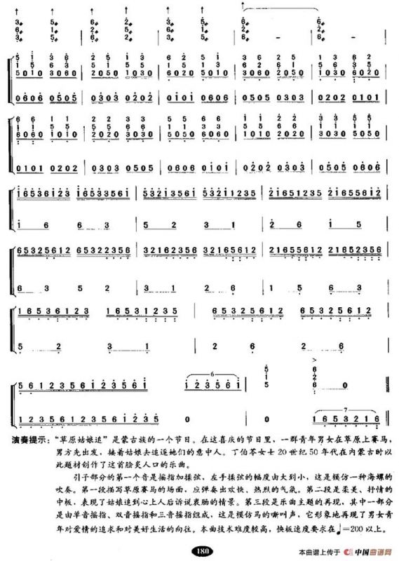 欢腾地草原古筝谱/古琴谱(原名:草原姑娘追),欢腾地草原简谱"