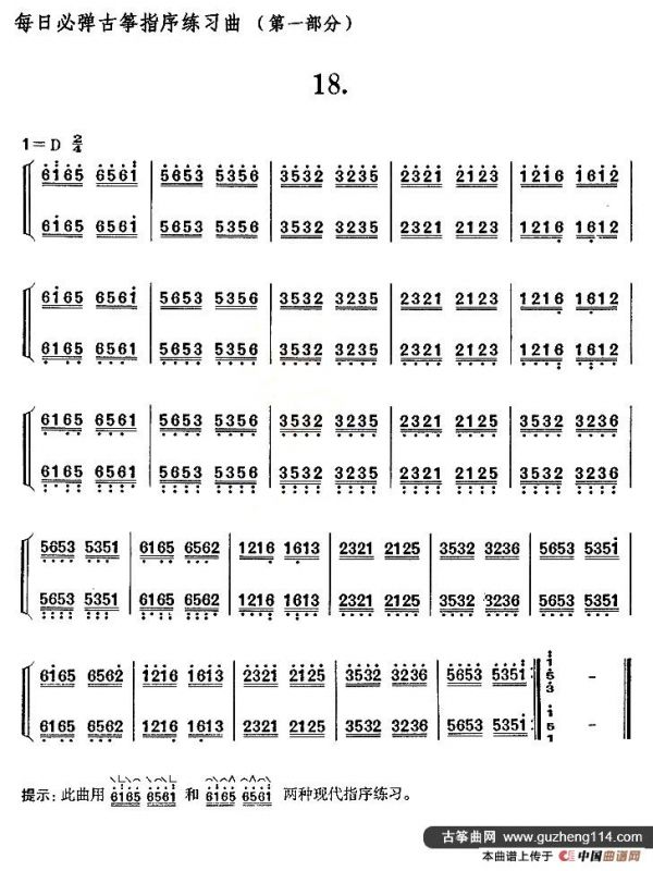每日必弹古筝指序练习曲古筝谱/古琴谱(第一部分·18),每日必弹古筝指序练习曲简谱"