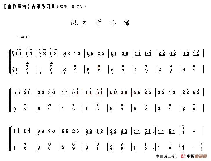 童庐筝谱:43.左手小撮古筝谱/古琴谱,童庐筝谱:43.左手小撮简谱"