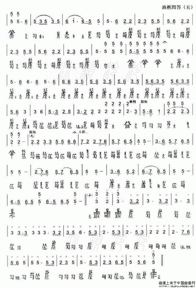 渔樵问答古筝谱/古琴谱(古琴减字谱、舞贻仙馆藏版),渔樵问答简谱"