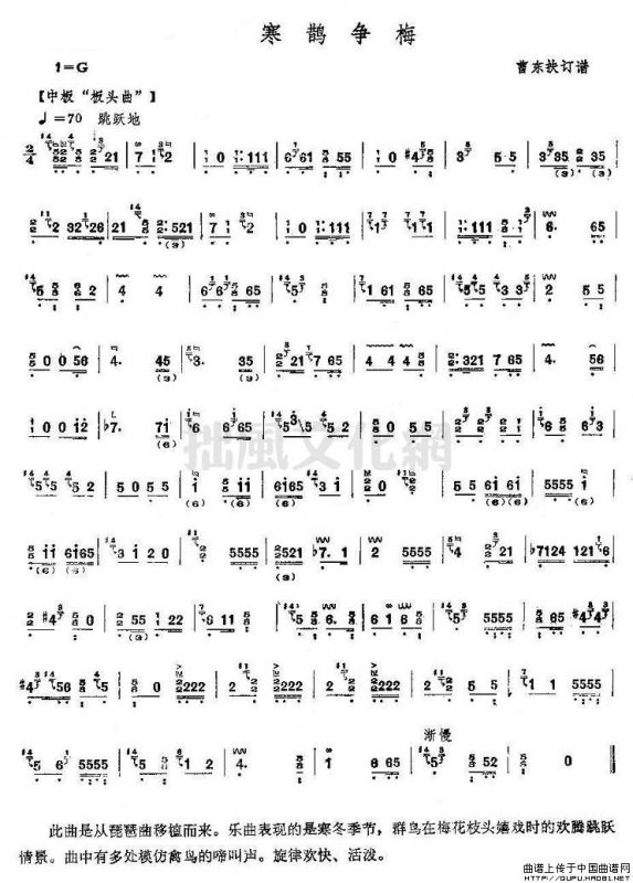 寒鹊争梅古筝谱/古琴谱,寒鹊争梅简谱"