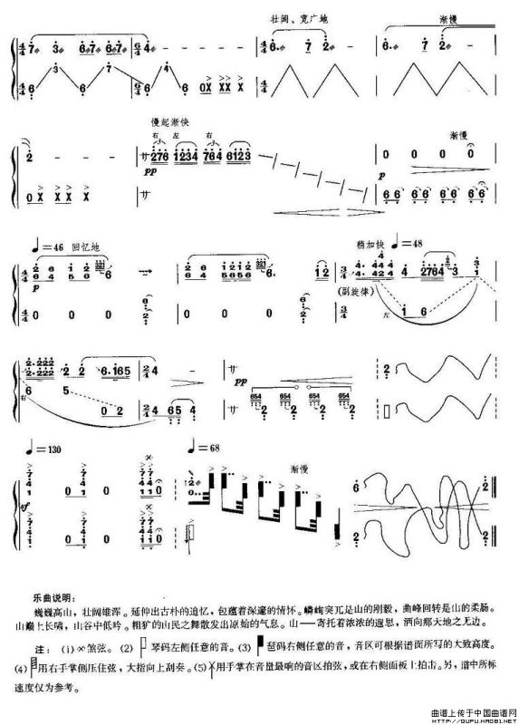 山的遐想古筝谱/古琴谱,山的遐想简谱"