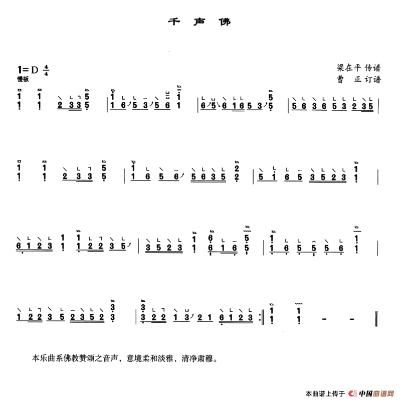 千声佛古筝谱/古琴谱(3个版本),千声佛简谱"
