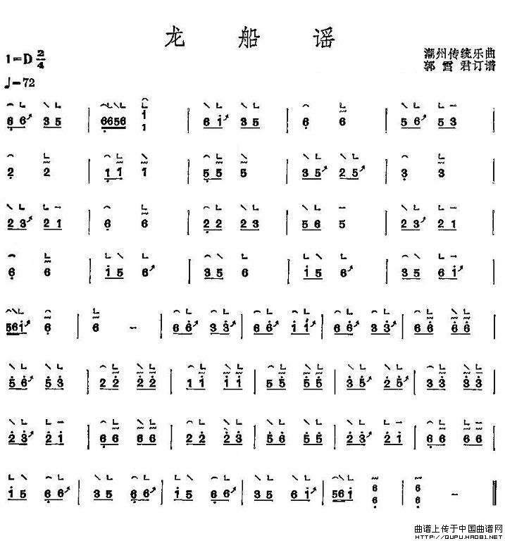 龙船谣古筝谱/古琴谱,龙船谣简谱"