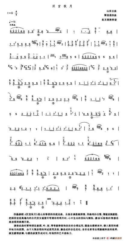 汉宫秋月古筝谱/古琴谱(版本一),汉宫秋月简谱"