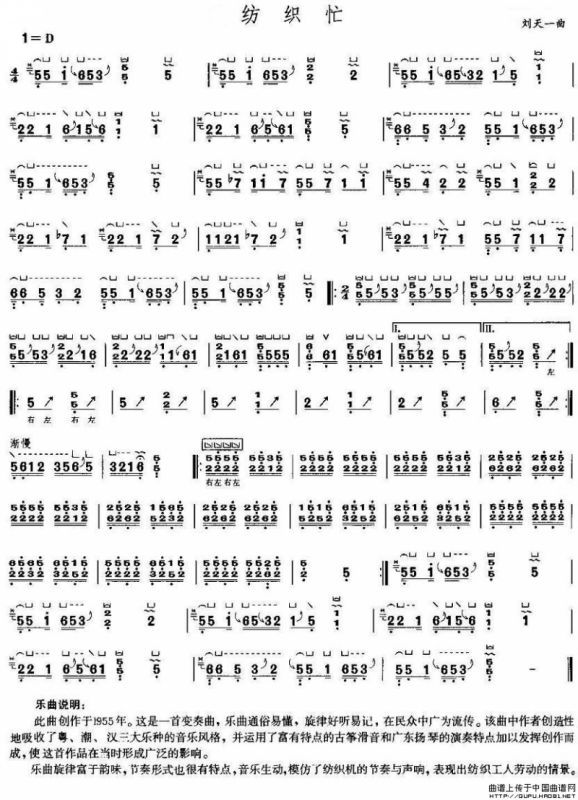 纺织忙古筝谱/古琴谱,纺织忙简谱"