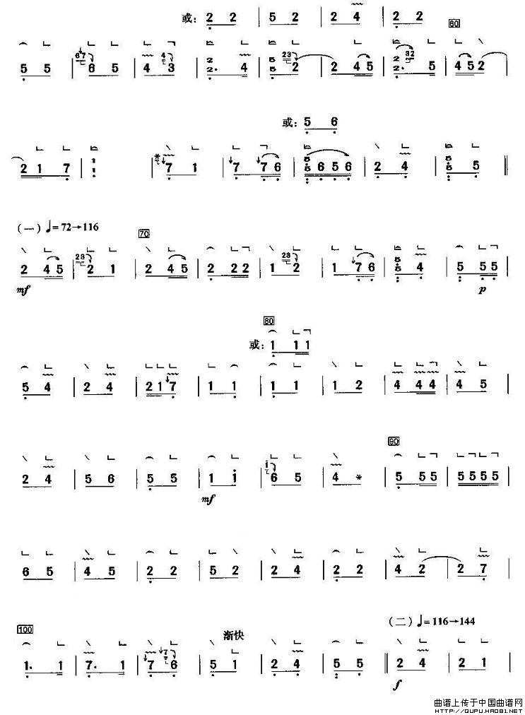 画眉跳架古筝谱/古琴谱,画眉跳架简谱"