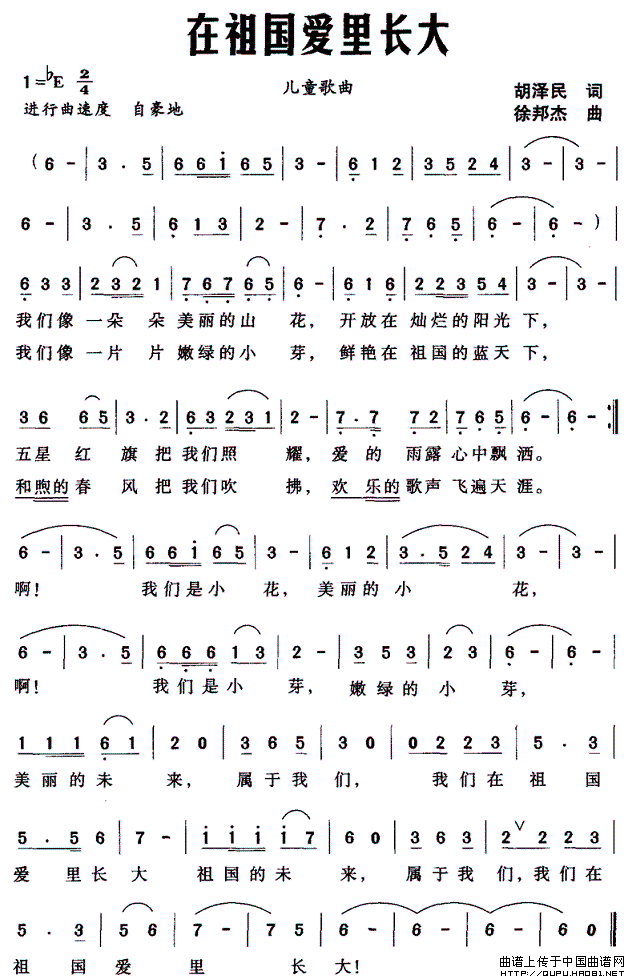 在祖国爱里长大简谱,在祖国爱里长大歌曲简介