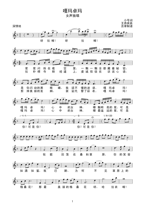 嘎玛卓玛简谱,嘎玛卓玛歌曲简介