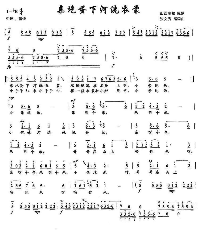亲圪蛋下河洗衣裳简谱,亲圪蛋下河洗衣裳歌曲简介