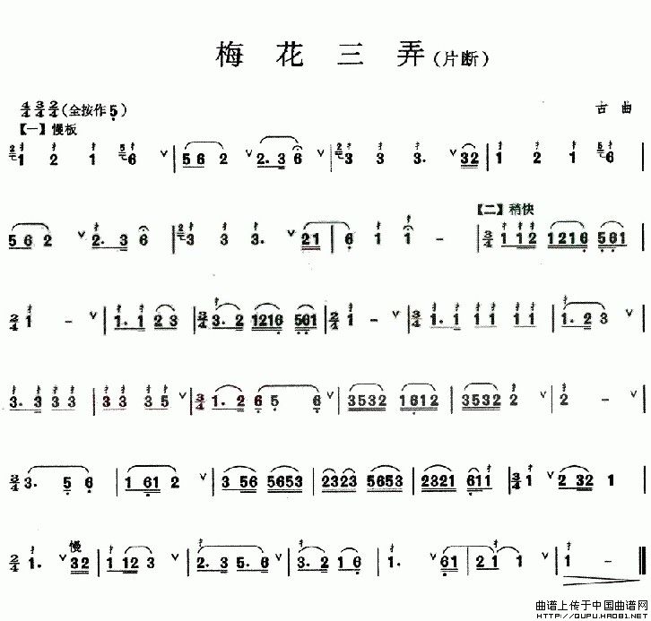 梅花三弄葫芦丝谱(片段),梅花三弄葫芦丝简谱"